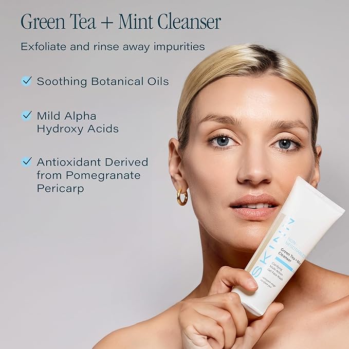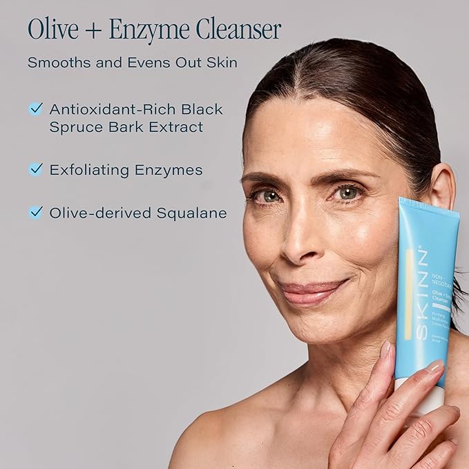 - Gel + Cream Face Wash: Cleanse in the morning and night with the SKINN Green Tea + Mint Cleanser and Olive + Enzyme Cleanser. This optimally balanced cleansing regimen will improve your skin both day and night. Includes 1 (4oz) Green Tea + Mint Cleanser and 1 Olive + Enzyme Cleanser (4oz).