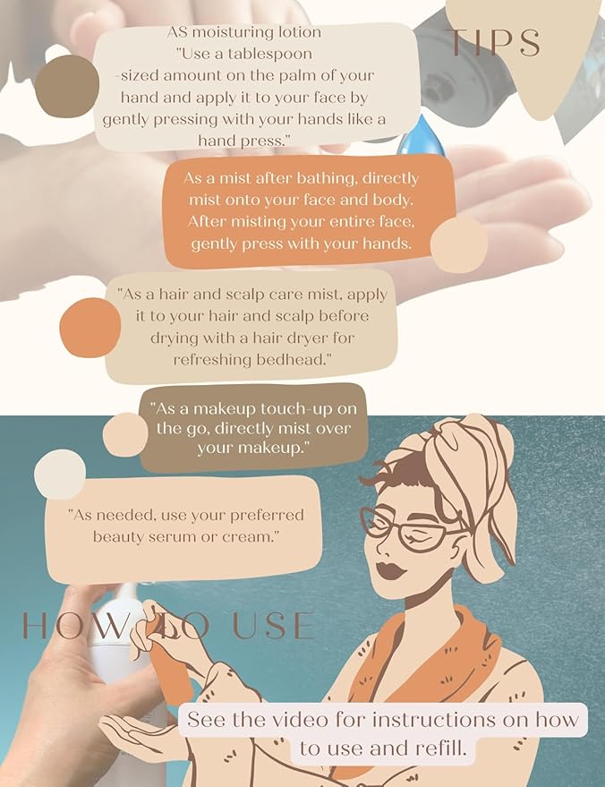 - 【Ultra-Lightweight, Watery, and Non-Greasy Formula】 "Though ultra-lightweight and watery, our essence deeply hydrates, leaving your skin soft, supple, and revitalized. The refreshing, watery formula absorbs quickly, delivering moisture deep into the skin without greasy residue. With continued use, your skin will feel smoother and more resilient. Ideal for those who prefer a non-greasy finish, this versatile mist can be used on the face, hair, and body for all-day hydration.