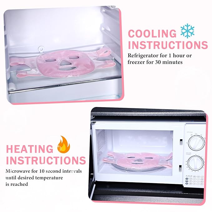 - Unparalleled Ease of Use: face Ice Mask and Eye Ice Pack are designed for your convenience; They can be applied alternately on eyes or face, providing maximum flexibility; Store them in a refrigerator at -18℃ or below for at least 2 hours for a cold compress or heat in a microwave in 10-15 second increments until desired temperature is reached, with a maximum heating time of no more than 30 seconds for gel face mask and 20 seconds for gel eye mask