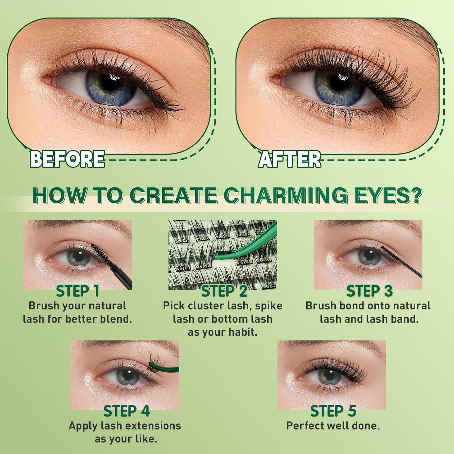 - Easy to Wear &Remove:Very easy to apply the cluster lashes with the brush included in the kit,the lash bond and seal extend the wear up to 3-4 days and the remover is very easy to remove the lash cluster and will not hurt the eyes