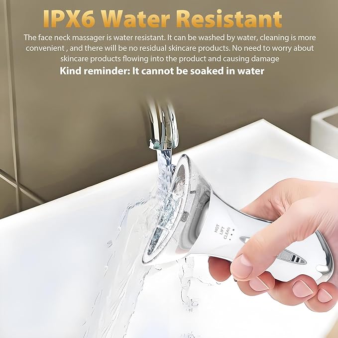 - Water Resistant Design: Our face neck massager is water resistant. it can be washed by water, cleaning is more convenient , and there will be no residual skincare products. no need to worry about skincare products flowing into the product and causing damage