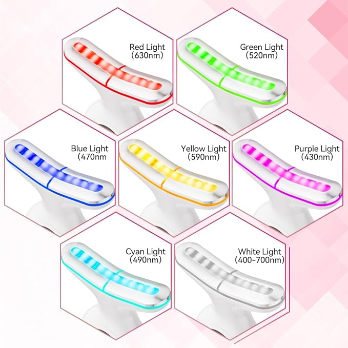 - 7-IN-1 Facial Massager: This versatile massager offers three modes and 7 colors, the left button can adjust the 7 colors, and the right button can adjust the three modes. Choose your preferred mode. For best results, cleanse your face and neck, then apply skincare products like serum or gel to keep your skin moisturized.
