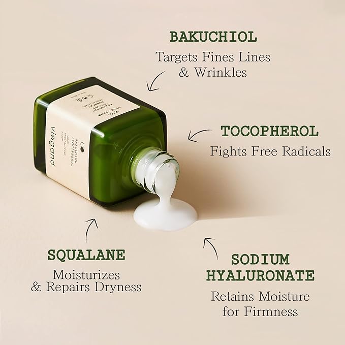 - 🌿 Bakuchiol – a naturally derived retinol-alternative that can help to reduce the appearance of fine lines and wrinkles, as well as improve the texture and firmness of the skin