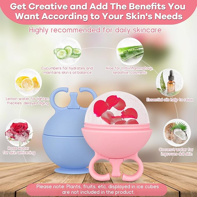 - 【HIGH QUALITY & MONEY SAVING】Ice roller for face made of high-quality silicone material, Reusable, durable, BPA free, face massager tool is made of food grade silicone. Pack of 2 for alternate use, which can save you money. DIY beauty recipes according to skin needs, lemon water whitening, green tea anti-inflammatory, cucumber water reduces swelling, mint leaves refreshing, coconut juice improves skin, have a spa experience at home. ice face roller ice globes for face ice for face ice facial