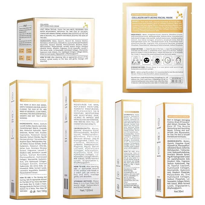 - Collagen Skin Care Set: The skincare set enriched with collagen ingredients, which moisturize your skin, replenish your skin with collagen and water. It also locks in moisture and restores skin's elasticity and vitality for a more hydrated and smoother skin