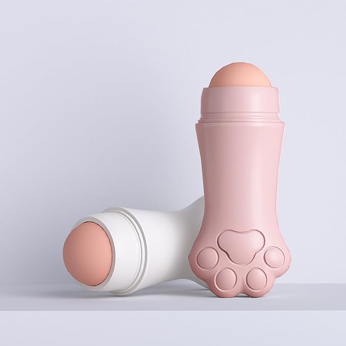 Face Roller oily skin oil absorbing massage tool, natural volcanic stone reusable facial skin care tool 2 packs,easy to carry, control the oiliness of the face (pink and white)