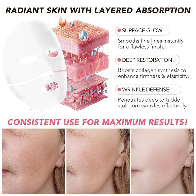 Collagen Face Mask - Collagen Real Deep Mask - Deep Collagen Overnight Mask for elasticity, firming, and moisturizing - 4 Packs