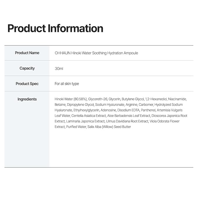 - Soothing & Hydrating 🌿 - Enriched with 80.58% Hinoki water, providing intense hydration and soothing effects for sensitive skin.