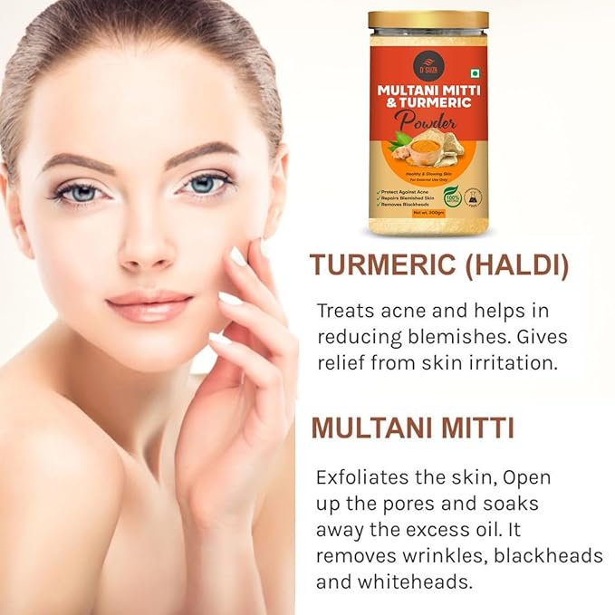 D'SUZA Fuller's Earth Powder, 11 Oz, 0.66 lb, Indian Healing Clay, Bentonite Clay, Natural Face Pack (11 Oz, Multani Mitti & Turmeric Powder)