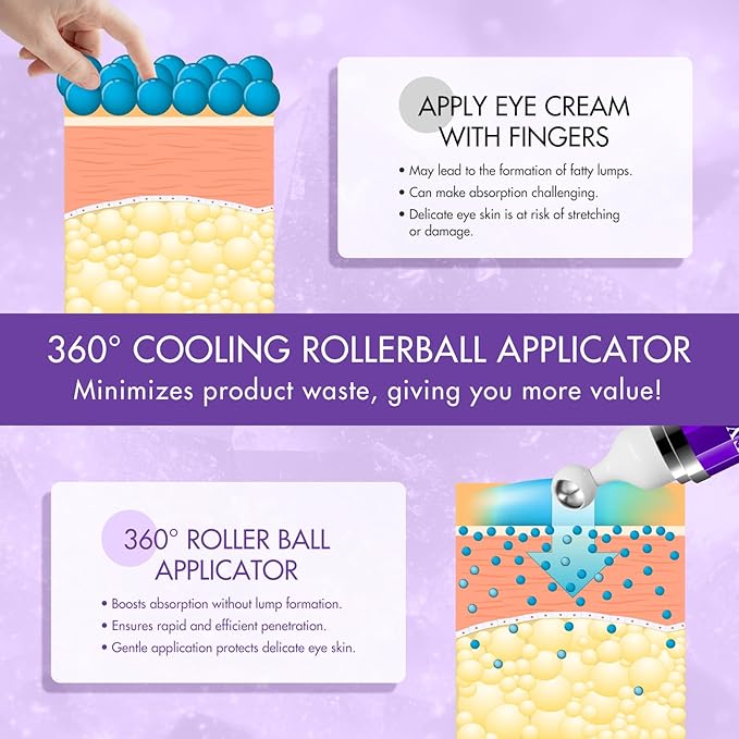 - 👒EASY TO USE - Gently press to dispense an appropriate amount of serum, apply evenly around the eye area with the roller ball, massaging in circular motions until fully absorbed. Use every morning and evening for best results.