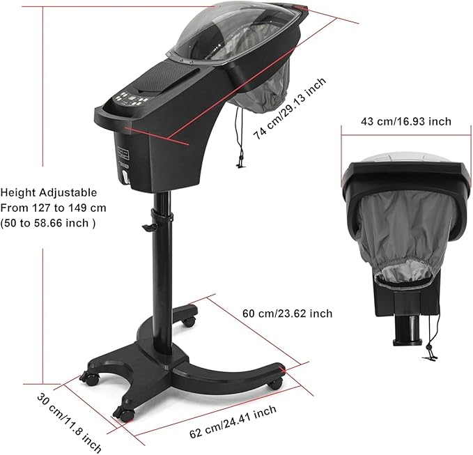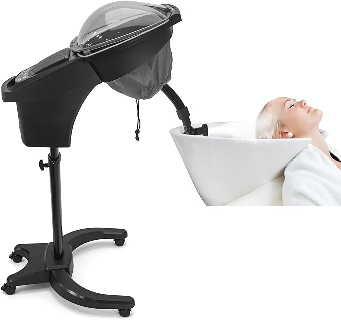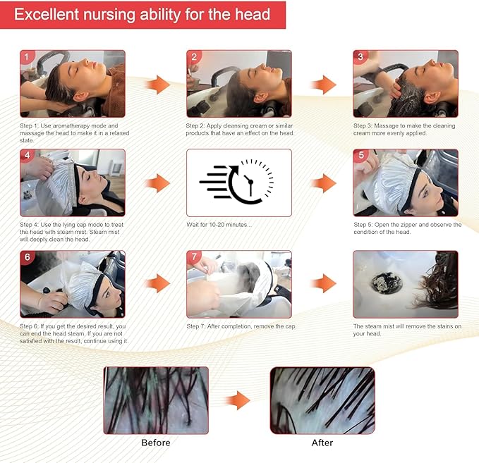 - Multipurpose & Convenient: This hooded hair steamer add lying function, aromatherapy function, open spray function, easy to do scalp clean, add new business to your shop. Hair steamer for shampoo bowl portable hair washing sink, can get the steam treatment for hair and face and hands, while doing treatment can add fragrance to the machine, get great scent along doing hair treatment.