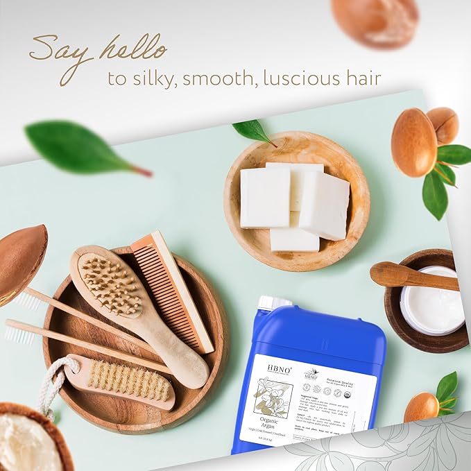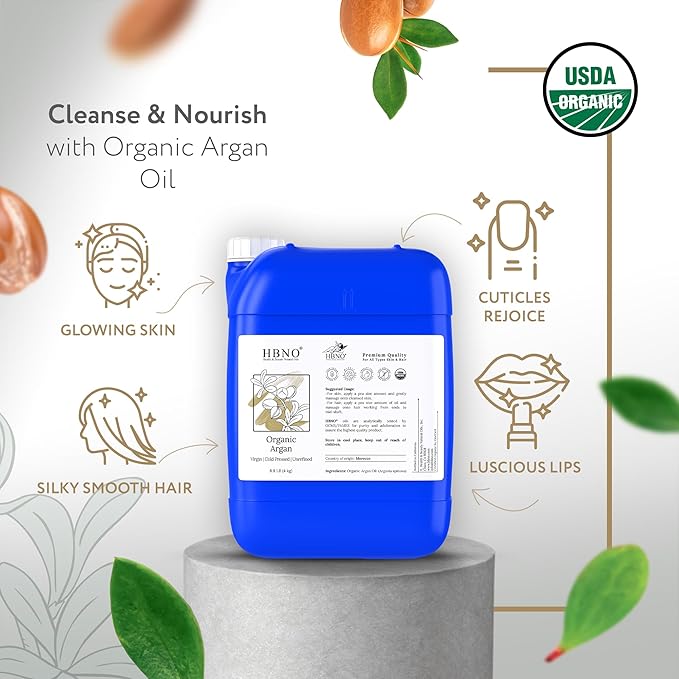 HBNO Organic Argan Oil - 8.8 lbs (4kg) - Ideal for Shampoos, Conditioners, Face wash, Lotions, and Skin care products.