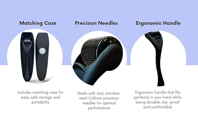 Derma Roller Microneedling Roller, 0.25mm Stainless Steel, Roller for Face, Beard, Scalp hair growth, Body, Microneedle Derm Stamp with Storage Case | For Women and Men | (Matte Black)