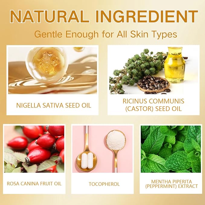 - Gentle Enough for All Skin Types:The organic essential oils formula is gentle and will not irritate the skin. This face serums for anti aging is suitable for all skin types, especially dry skin.Our formula mainly contains the Black seed oil, rosehip oil and castor oil for face with no added fragrances or chemicals to ensure use securely