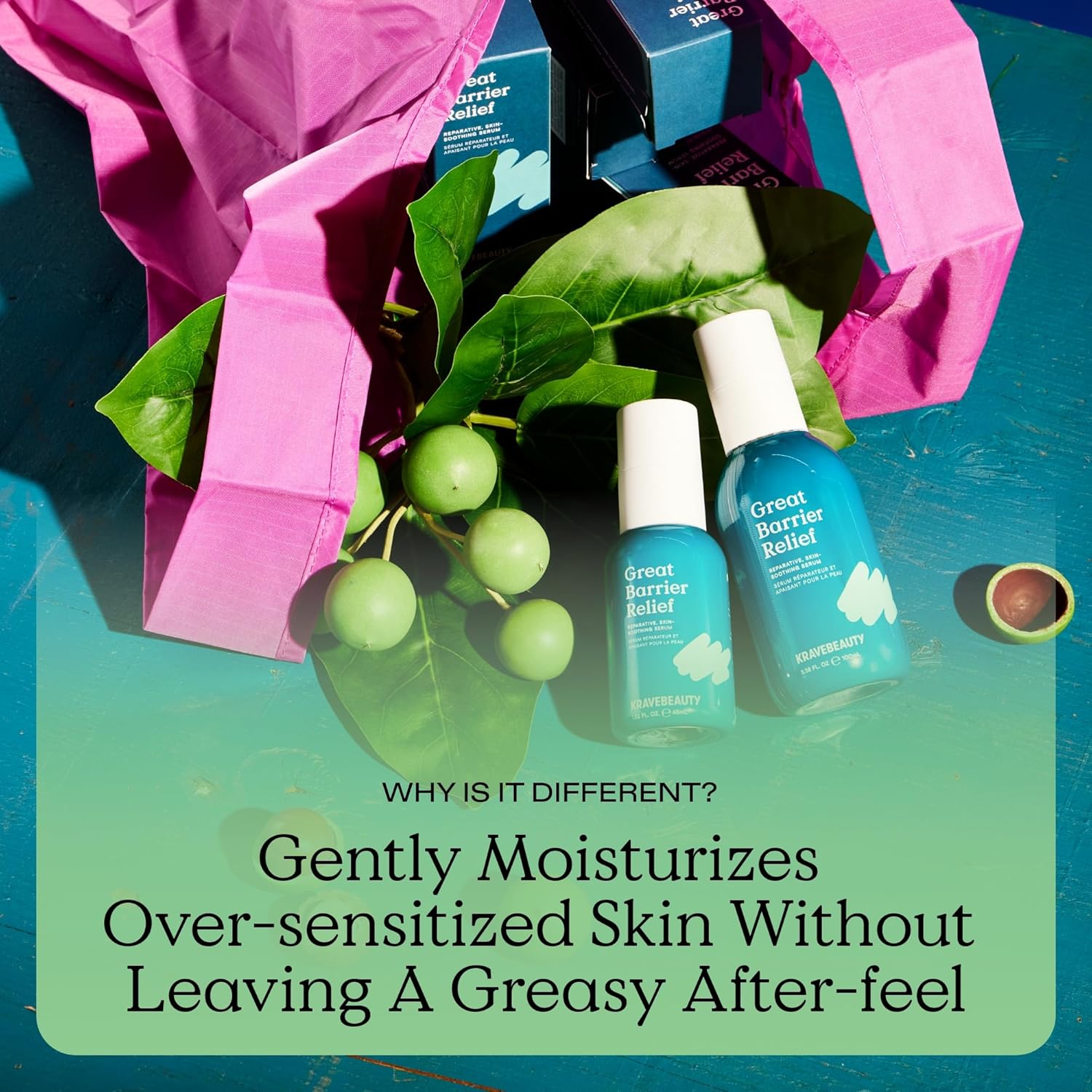- SKIN SOOTHING SERUM - A creamy, nourishing serum that calms signs of sensitivity caused by a compromised skin barrier now in a convenient duo. With its blend of nourishing oils + rebalancing actives, Great Barrier Relief helps by gently hydrating the skin, soothing irritation, and strengthening the barrier wall to replenish dry skin and kick redness to the curb. Whether you've over-exfoliated or got too pump-happy with retinol, GBR is here to lend a calming hand, no bat symbol required.