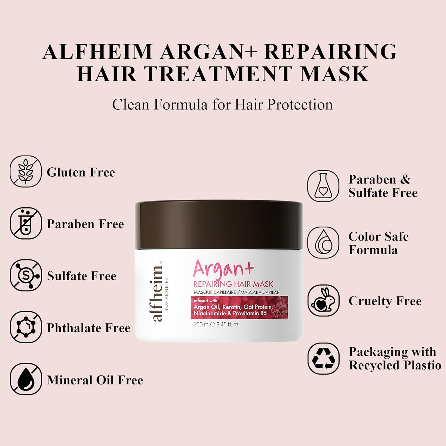 ALFHEIM Argan Repairing Hair Mask | Deep Nourishing & Moisturizing Treatment for Dry, Damaged Hair | Infused with Argan Oil, Keratin & Oat Protein | Anti-Frizz & Strengthening Formula | 8.45 oz