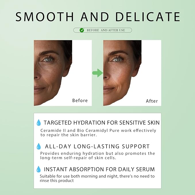 - 💧 ALL-DAY LONG-LASTING SUPPORT - More effective than hyaluronic acid, this formula not only provides enduring hydration but also promotes the long-term self-repair of skin cells. Without the restorative power of ceramides, the skin cannot fully absorb essential nutrients and moisture.