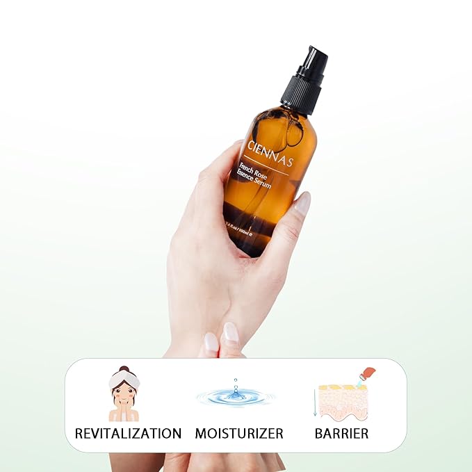 - 🌹 NATURAL ROSE INFUSED ESSENCE FOR GLOWING SKIN Transform your skincare routine with the luxurious hydration of CIENNAS Rose Infusion Essence. Crafted from pure rose hydrosol and enriched with rose essential oil, this serum deeply hydrates, calms, and brightens, giving sensitive skin the gentle care it deserves. Perfect for achieving that fresh, dewy glow every day.