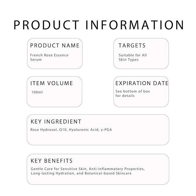 - 🌹 ENHANCED ELASTICITY WITH FRENCH ROSE EXTRACT Experience the unique power of French rose extracts that work to boost skin elasticity and strengthen cell adhesion, leading to smoother and firmer skin. This natural formula helps reduce the appearance of fine lines, giving you a youthful, radiant look.