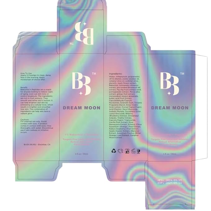 Bakuchiol Retinol Serum Alternative - Dream Moon Anti Aging Serum with Hyaluronic Acid, Schisandra, Peptides & Jojoba, Reduces Fine Lines & Wrinkles, Hydrating Face Moisturizer, All Skin Types, 1 oz