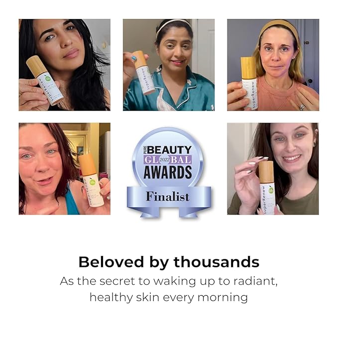 SuperRenew Organic Face Oil Hydrating Facial Skin Care Products with Bakuchiol, Sea Buckthorn, CoQ10, Squalane Face Moisturizer for Dry Skin, Anti-Aging Oil Women’s Night Routine (35ml) - Green bag