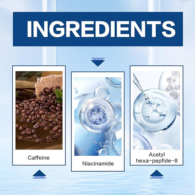 - 【Anti-Aging Powerhouse】Packed with Caffeine, Hyaluronic Acid, and Niacinamide, our serum tackles dark circles, puffiness, and wrinkles for a more youthful look. Use twice daily.