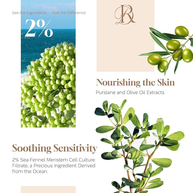 - 2% Crithmum Maritimum Extract in Face Serum: Sourced from the ocean, this valuable ingredient is rich in active compounds that soothe sensitive skin and diminish redness, providing gentle yet effective nourishment and protection in our face serum