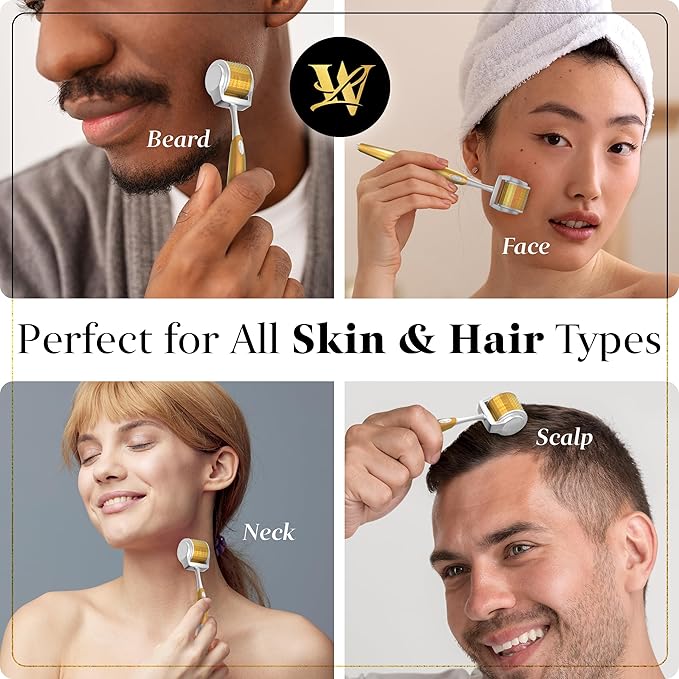 Derma Roller for Skin, Hair & Beard – Women and Men Titanium Microneedling Roller for Face & Scalp, Safe & Easy to Use - Premium Gold