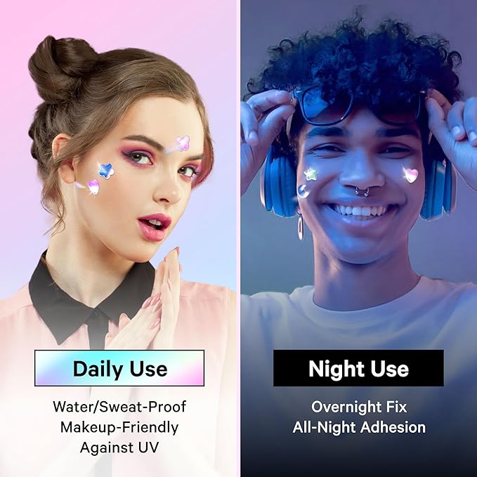 - 【Cute & Fun】Sosky Holographic pimple stickers bring fun and style to acne care with unique, eye-catching designs. Choose from shapes like stars, hearts, butterflies, clouds, and flowers. Each patch for face has a holographic radiant color effect, makes acne care feel less like a chore and more like a fun, fashionable routine.Also fit for many occasions, such as dress-up, costume party, festival party.