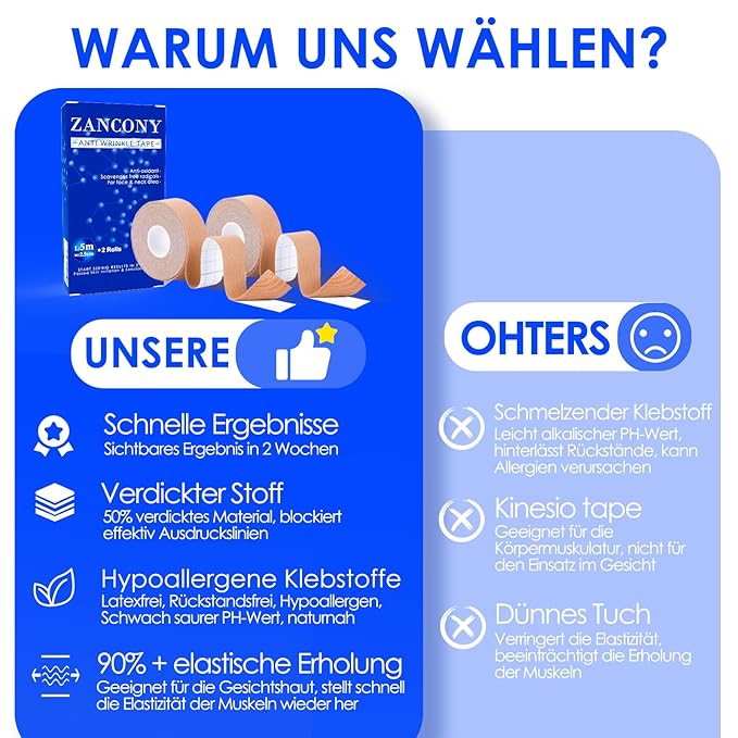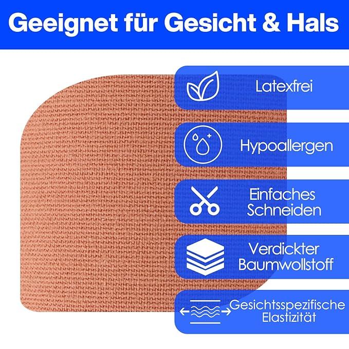 - Suitable for face & neck-Our Latex-Free & Hypoallergenic Facial Tape-Specially crafted for delicate skin, this tape features thickened cotton fabric with facial-specific elasticity to lift and smooth wrinkles while adapting seamlessly to your natural expressions.