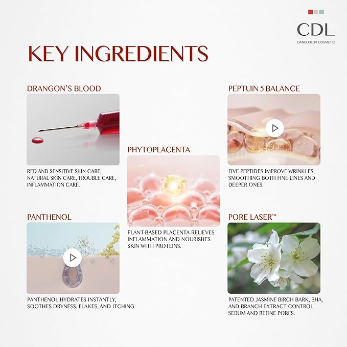 - 5 Peptides & Phytoplacenta: This powerful blend of 5 peptides firms and smooths the skin, while Phytoplacenta, a plant-based ingredient, reduces inflammation and provides deep nourishment to the skin with essential proteins.