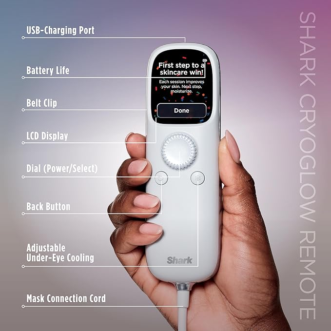 Shark CryoGlow LED Face Mask (FSA/HSA Eligible*) with Under-Eye Cooling, Anti-Ageing & Blemish Repair, Red & Blue LED, Infrared Light Therapy, USB-C, Remote Control, Storage Bag, Blue Frost, FW312
