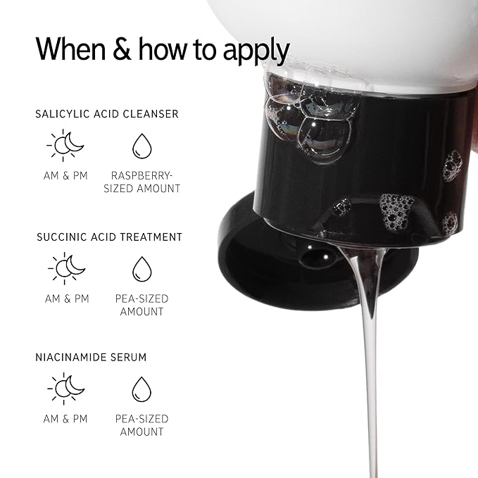 - CLEANSE – Salicylic Acid Cleanser use daily to unclog and gently exfoliate while visibly reducing blackheads and breakouts.