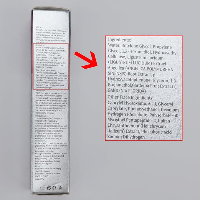 - ingredients:Water, Butylene Glycol, Propylene Glycot, 1,2-Hexanediol, Hydroxyethy!Cellulose, Ligustrum Locidum (EIGUSTRUM LUCIDUM) Extract, Angelica (ANGELICA POLYMORPHA SINENSIS) Root Extract, p Hydroxyacetophenone, Glycerin, 1,3 Propanediol,Gardenia Fruit Extract (GARDENIA FLORIDA) Other Trace Ingredients: Caprylyt Hydroxamic Acid, Glycery Caprylate, Phenoxyethanol, Disodium Hydrogen Phosphate, Polysorbate -60 Myristoyl Pentapeptide 4, ltalian Chrysanthemum (Helichrysum ltalicum) Extract, Phosphoric Acid Sodium Dihydrogen