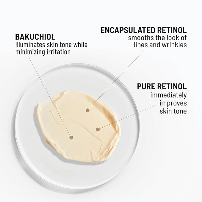 - SAFE, EFFECTIVE INGREDIENTS - A unique combination of three forms of retinol: Pure retinol immediately improves skin tone. Encapsulated retinol smooths the look of lines and wrinkles. Bakuchiol—a plant-based retinol alternative—illuminates skin tone.