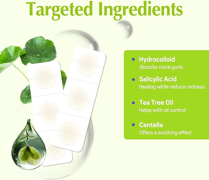 - Medical Grade Ingreditents:Advanced hydrocolloid patches for face with ingredients such as Tea Tree Oil, Centella, and Salicylic Acid helps target pimples, zits, and blemishes, reduces redness, controls oil, and this pimple patch also acts as a blemish spot treatment.