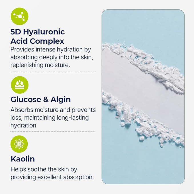- [5D COMPLEX HYALURONIC ACID]: 5 types of molecules of HA allows moisture to absorb immediately, deeply, and densely inside your skin to by building 3D networks in the layers of the skin to maintain hydration and moisturization to plump your skin.