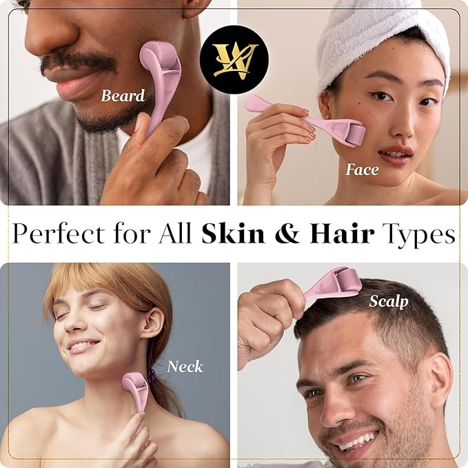 Derma Roller for Skin, Hair & Beard – Women and Men Titanium Microneedling Roller for Face & Scalp, Safe & Easy to Use - Pink