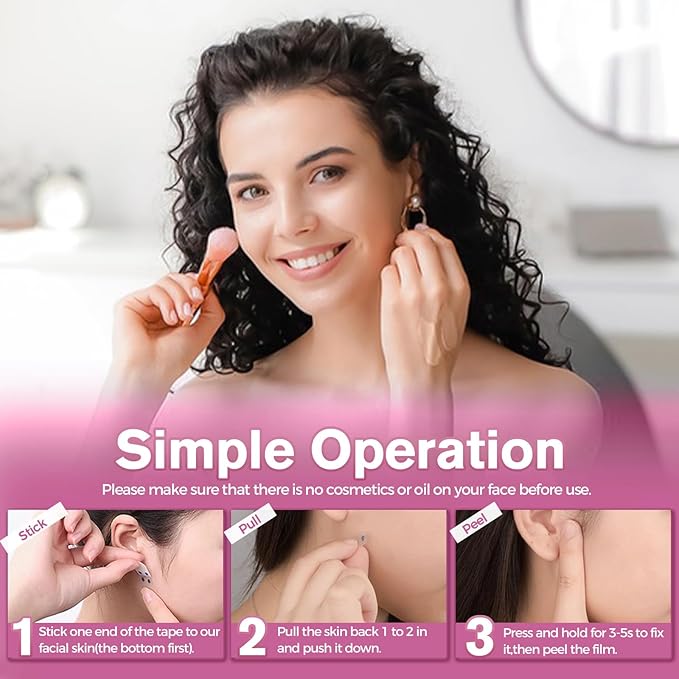- Invisible Under Makeup——Our invisible facelift tape has a thin design that fits perfectly under makeup, allowing you to easily have firm and lifted skin without revealing your secrets. It is the perfect facelift tape for your flawless and confident look wherever you are. (Note: Before using the facelift tape, please keep your face clean and dry, and do not wet your face or stain your face with makeup.)