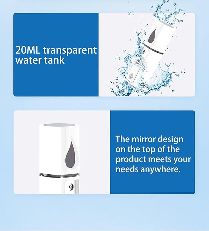- 【 Wide Application & Multiple Charging Options】The facial care mister produces an ultra-fine nano-ionized mist. Slide the switch to dispense the mist in one second. The facial care steamers is perfect for moisturizing the face, body, hair, eyelash extensions, and daily makeup. The mini face mister can also relieve symptoms of allergic rhinitis and nasal congestion, and soothe tired eyes. You can charge the face mister anytime with powerbank, laptop, power outlet, or car charger.
