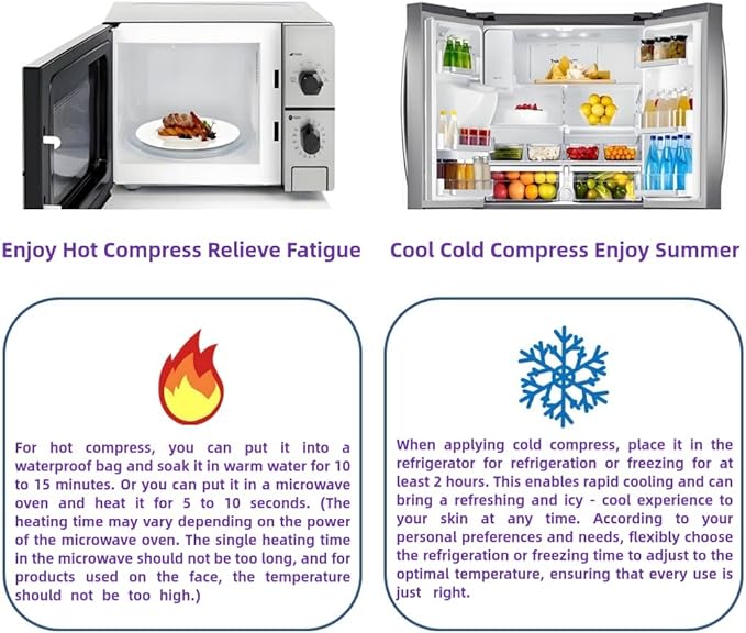 - 4. Hot Cold Dual Therapy - Simply store eye mask in the freezer for 2 hours for 10-15 minutes cold therapy for a refreshing and effective cooling experience, or heat it in the microwave for 15 seconds to relieve dry eyes, tension relief.