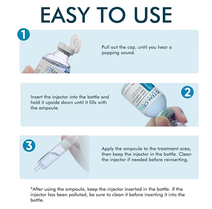 - EASY TO USE: After cleansing and toning, apply 3 - 5 drops of the stem cell serum evenly over the face and massage gently until fully absorbed, integrating perfectly into your daily skincare routine