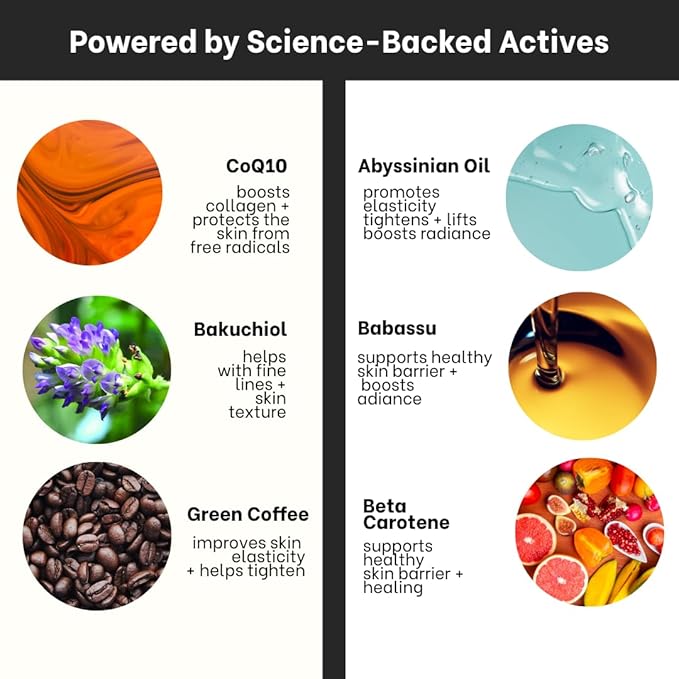 - Redness Relief: With antioxidant-rich green coffee oil and beta-carotene, this soothing hydrating face oil calms visible redness and irritation often found in dry or reactive skin. Whether used morning or night, our face oil for women anti aging helps balance your skin’s tone and texture, Our night moisturizer for face for calm, nourished, stress-free skin.