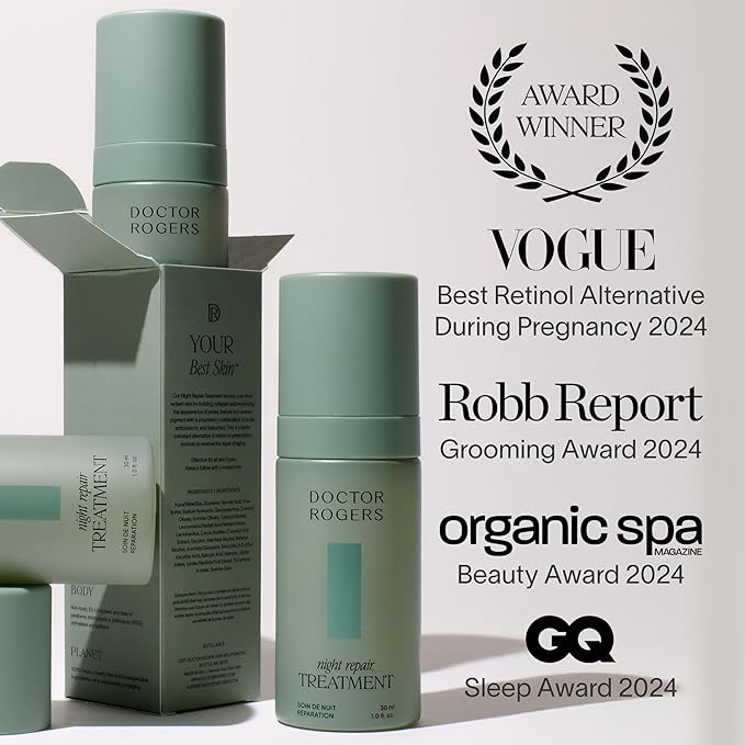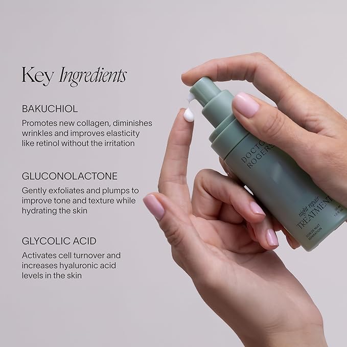 Doctor Rogers Night Repair Treatment. Restoring & Hydrating Anti-Aging Face Serum with Glycolic Acid, 1 Ounce (30 ml)