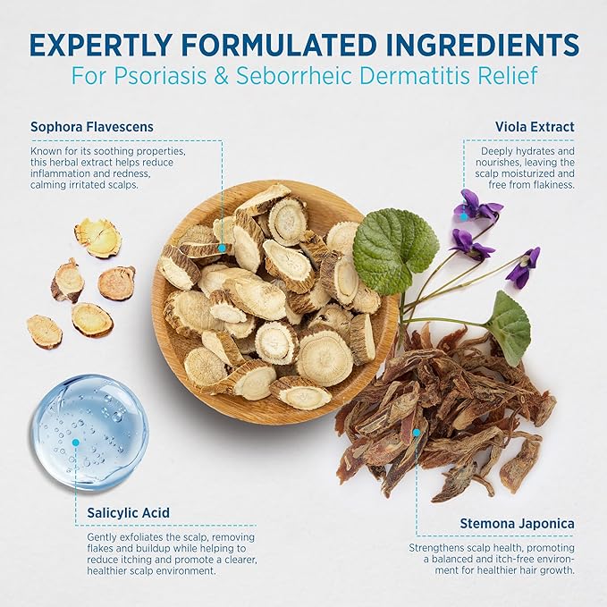 - Product Benefits : Comprehensive cream, shampoo & conditioner set soothes scalp dermatitis, psoriasis, dandruff & itching fast. Comprehensive cream, shampoo & conditioner set soothes scalp dermatitis, psoriasis, dandruff & itching fast.