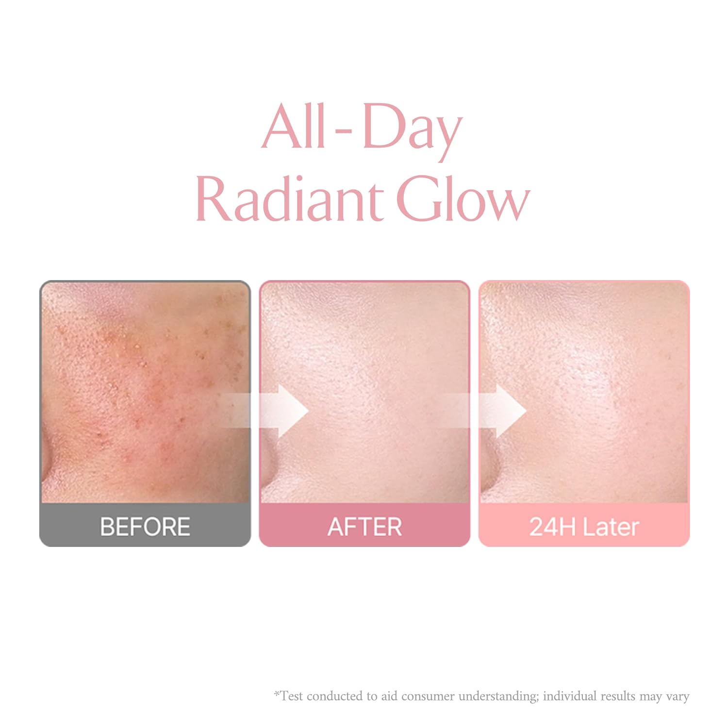 - [24H Proven Wear + 0.00 Irritation Tested] Clinically tested for 24-hour performance, including tone correction, glow retention, and texture improvement. With a dermatologist-rated irritation score of 0.00, this cushion is safe for daily use—even for sensitive or reactive skin—so you can wear it with total confidence.