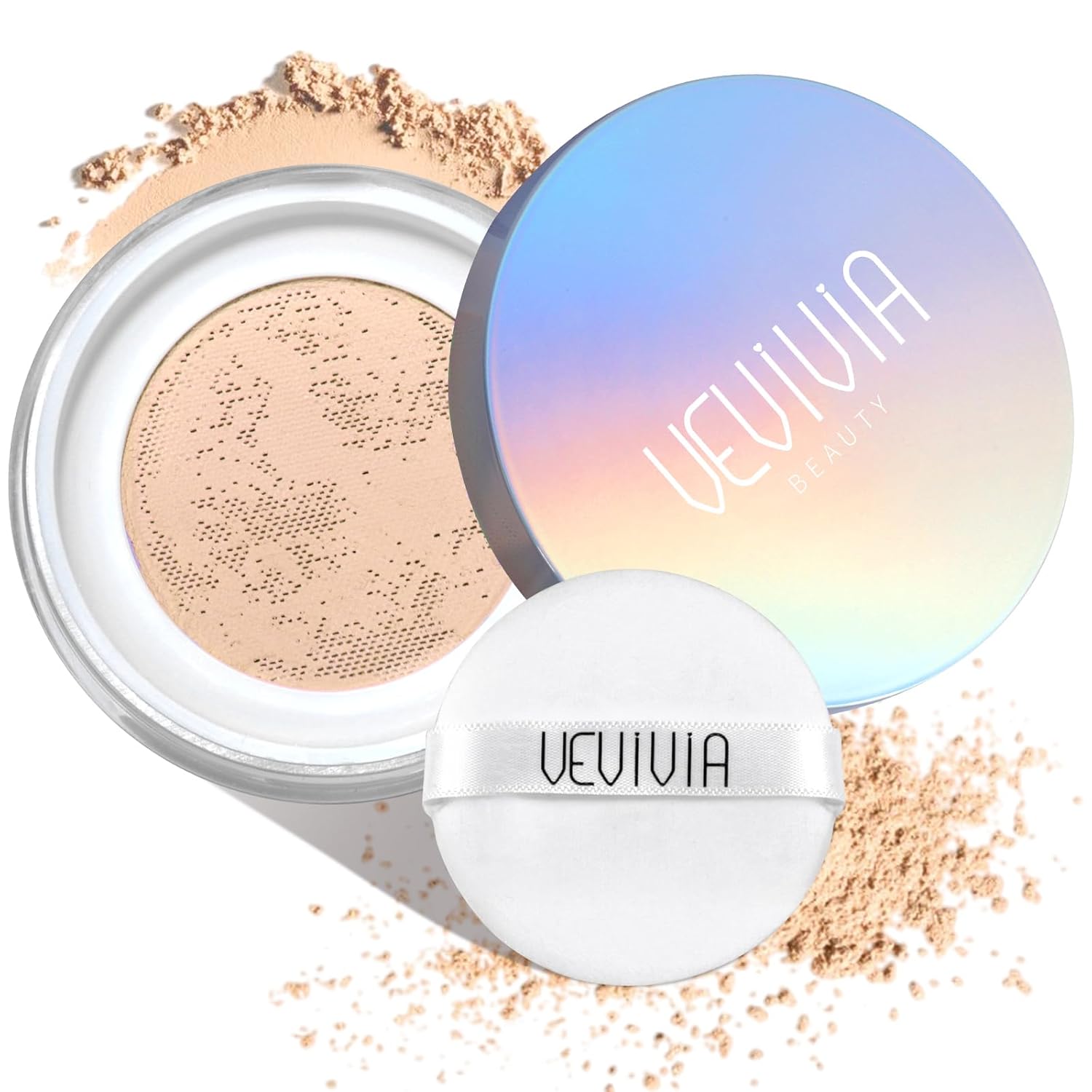 Vevivia Setting Powder - Creaseless Face Powder, Long Lasting Loose Powder Makeup with Blurring and Natural Finish, Loose Setting Powder for All Skin Types, Shine Control, Up to 24 Wear, Translucent