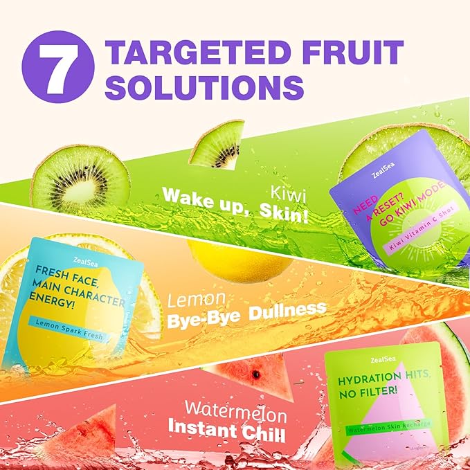 - 7 Targeted Fruit Solutions: Choose your glow! Avocado deeply moisturizes, Lemon glows, Watermelon refreshes, Kiwi energizes, Coconut hydrates, Peach plumps, and Lychee balances oil and water. Tailor your self-care ritual to your skin's daily needs